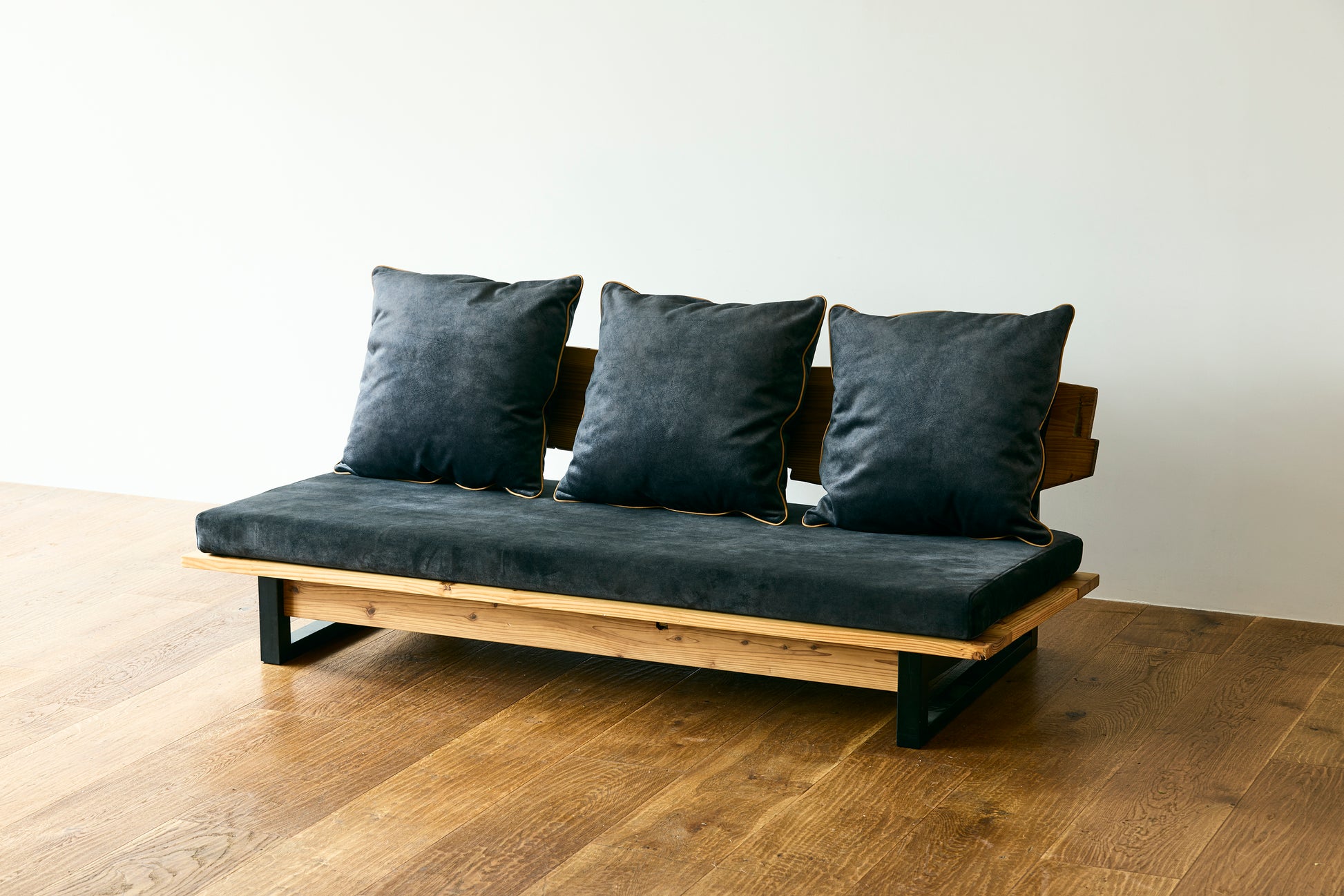 座面の奥行きは79センチと広々としており、ゆったりと座ったり、横になってくつろぐことも可能です。また、付属のクッションにより、快適な座り心地を提供します。座面の高さが低めに設計されているため、空間をより広く感じることができます。
